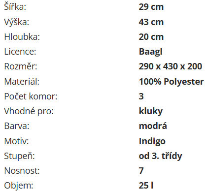 • Ke každému batohu lze pořídit další produkty ve stejném designu, takže jej snadno sladíte s penálem, sáčkem na obuv a dalšími školními pomůckami.