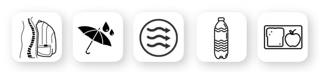 - Po obou stranách batohu se nalézají kapsy na deštník nebo lahev s pitím. Kapsy svým umístěním a elastickými okraji pomáhají eliminovat riziko rozlití nápoje a poničení obsahu aktovky.
