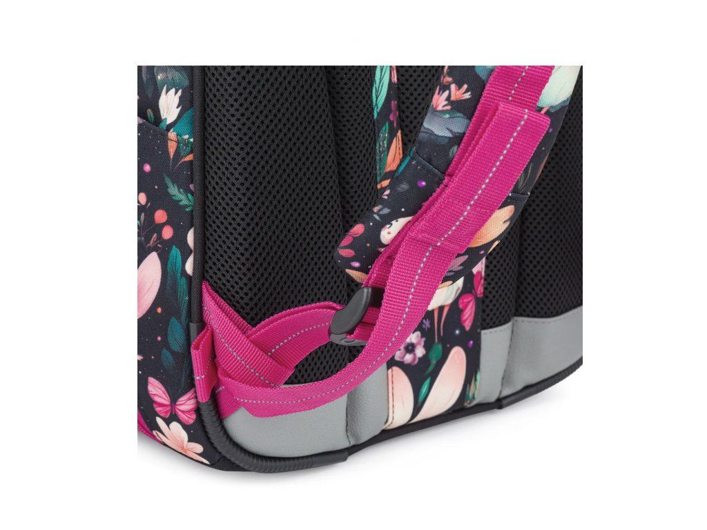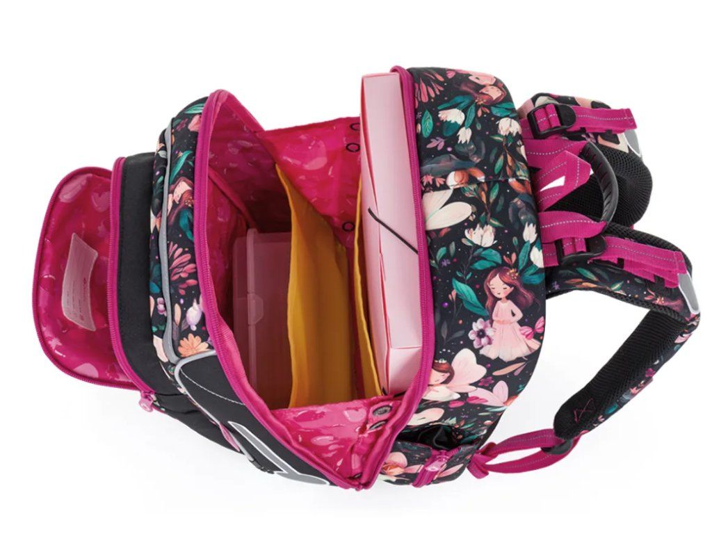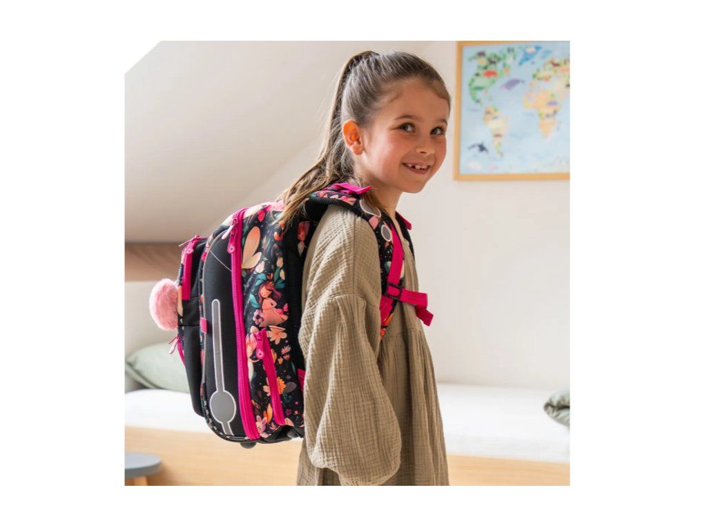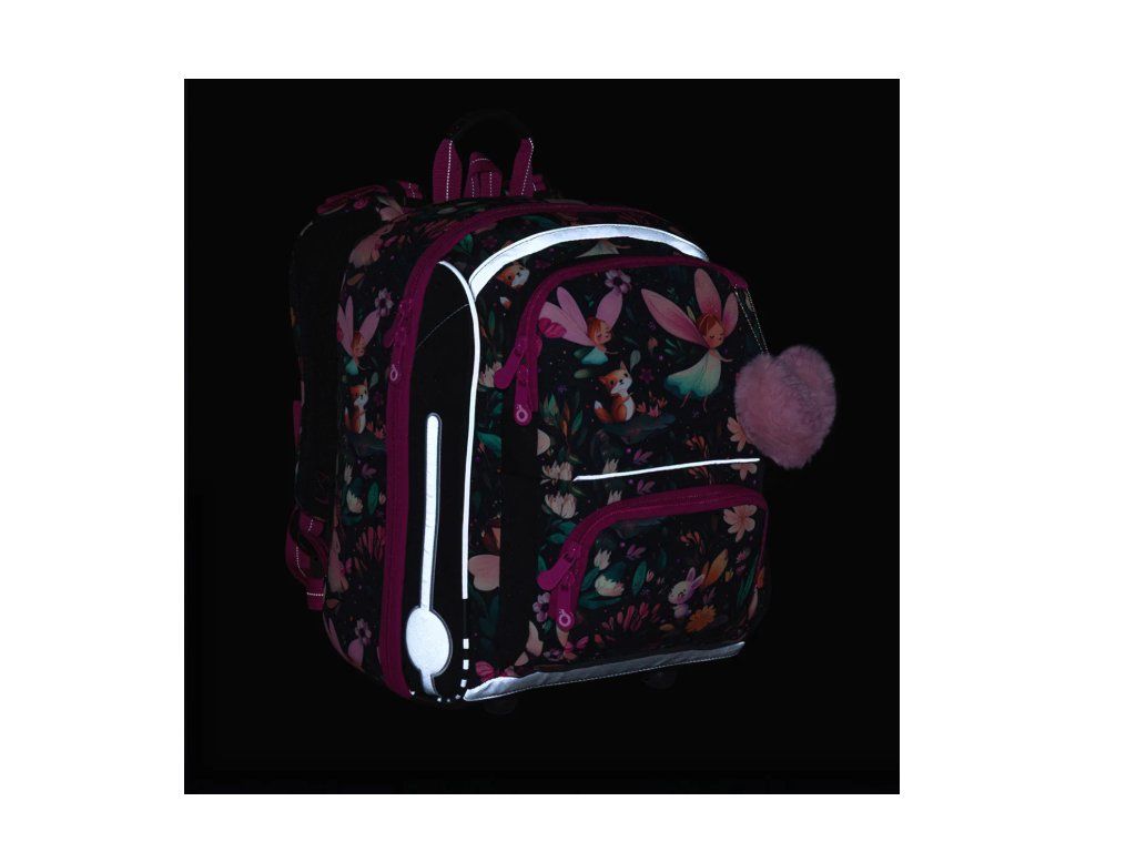 Reflexní prvky jsou strategicky umístěny na čele, bocích i ramenních popruzích aktovky. Vaše dcerka tak bude dobře viditelná ze všech směrů – ať už se vrací ze školy za šera nebo za nevlídného podzimního počasí.
