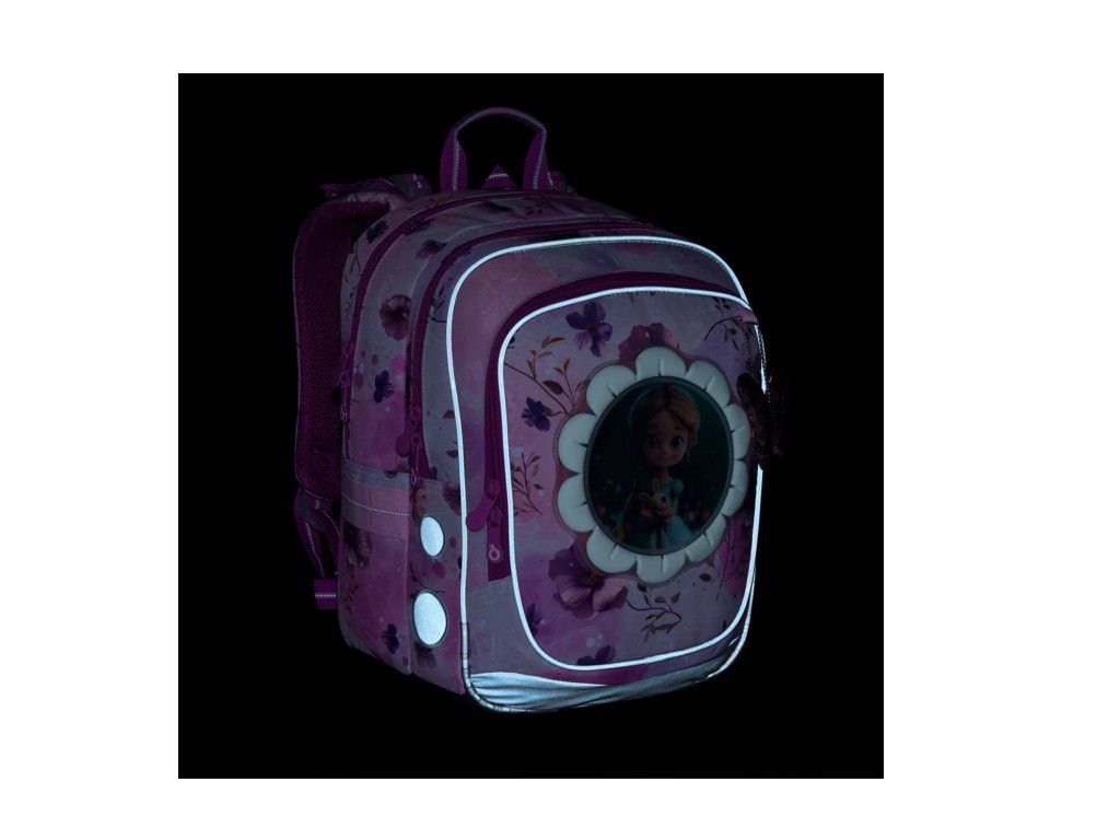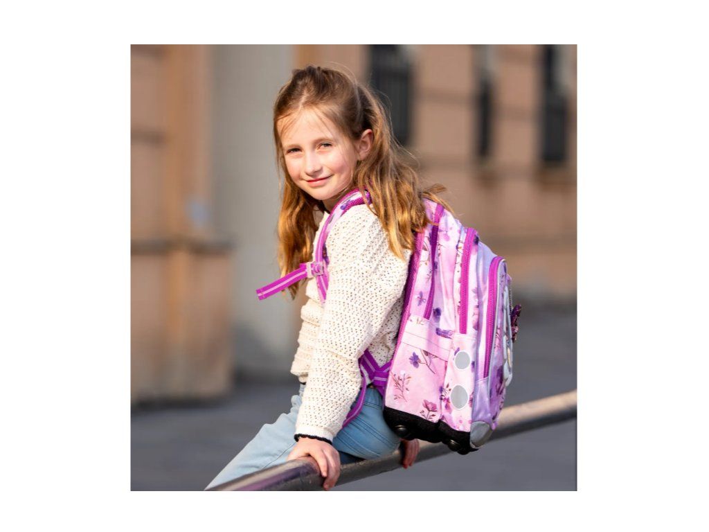 Reflexní prvky jsou rozmístěny na čele, bocích i ramenních popruzích batohu, takže vaše dcerka bude dobře viditelná ze všech stran – za šera, v mlze i v deštivých podzimních dnech. Drobným, ale praktickým detailem jsou také magnetky na koncích ramenních popruhů, které zabrání nepříjemnému vlání volných konců popruhů do stran.