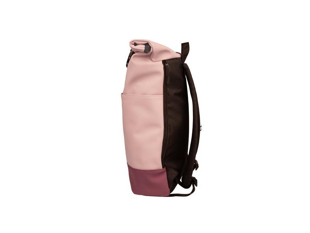Barevný kontrast pudrově růžové a vínové je hlavním vizuálním prvkem batohu MFP Roll Up. Tato kombinace vytváří jedinečný a snadno rozpoznatelný vzhled, který se hodí k různým městským stylům. Kvalitní PU materiál zajišťuje odolnost, vodoodpudivost a snadnou údržbu, takže batoh dobře obstojí při každodenním používání. Hlavní komoru lze otevřít rolovacím systémem s přezkou a zipem, nebo pomocí zadního dlouhého zipu, který umožňuje rychlý přístup k celému obsahu.