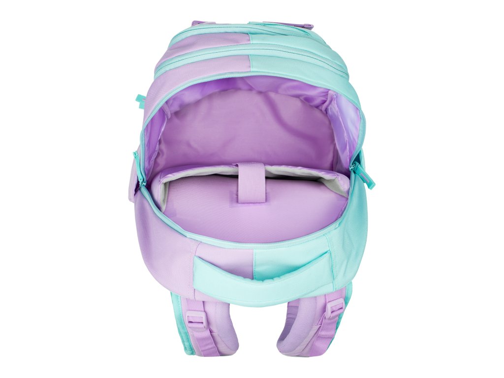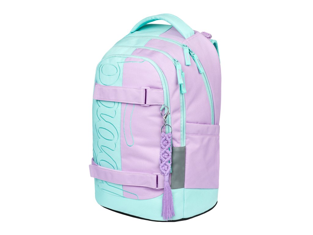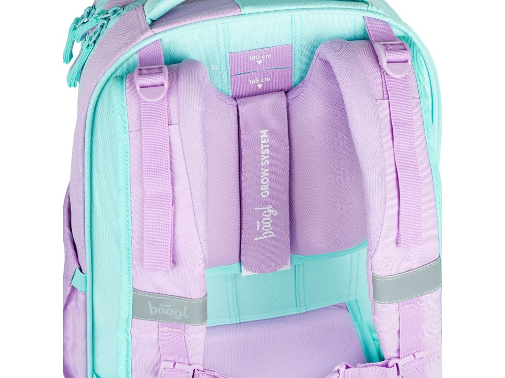 Ergonomický školní batoh Skate Max Sweet v pastelových barvách a popruhy pro uchycení skateboardu je díky nastavitelnému zádovému systému možné upravit na čtyři různé velikosti. Lehký batoh s hmotností pouhých 1150 g je vybaven posuvným zádovým systémem, který umožňuje nastavení až na čtyři různé velikosti.