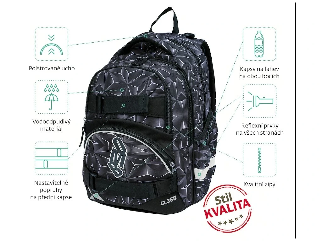 - BEZPEČNOST – reflexní prvky na všech stranách batohu pro lepší viditelnost a bezpečnost za každých okolností.