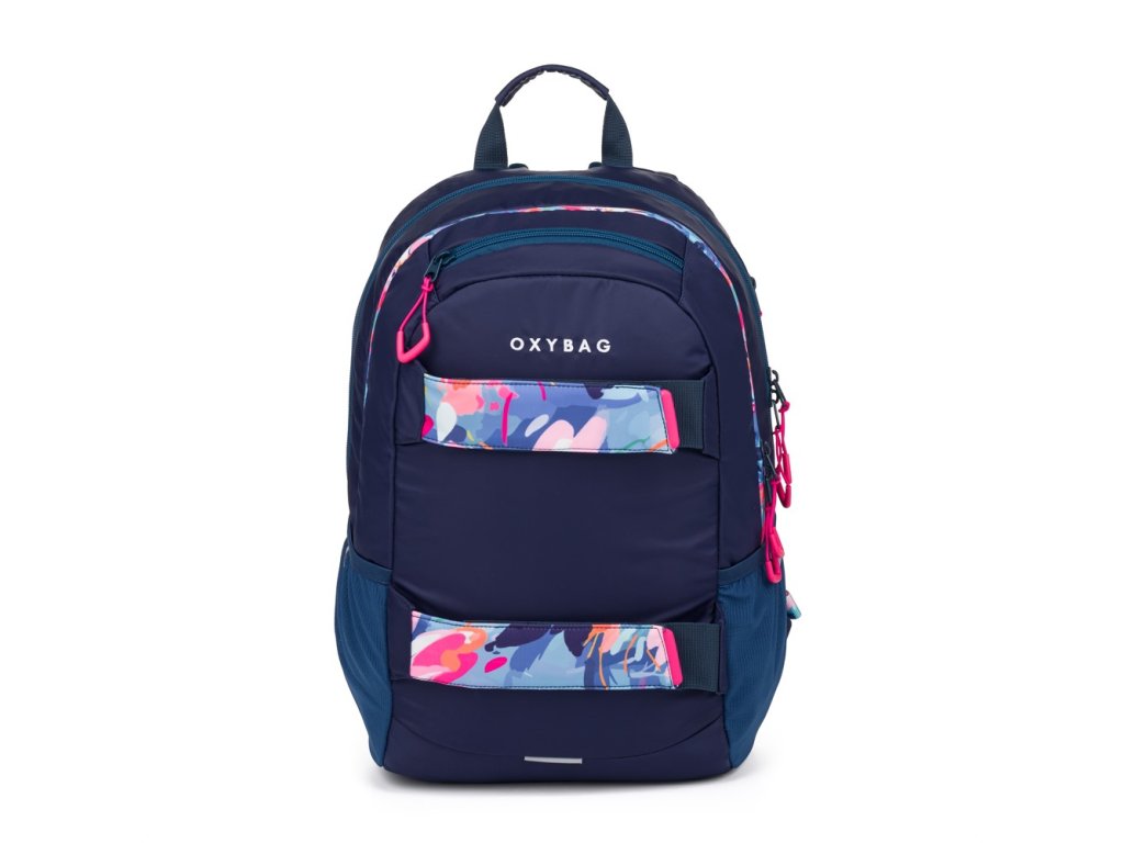 Studentský i volnočasový školní batoh řady OXY SPORT vyniká ergonomicky tvarovanými zády, nastavitelnými polstrovanými ramenními popruhy a hrudním popruhem, díky kterým se pohodlně nosí. Batoh se skládá ze dvou hlavních komor a jedné menší přední kapsičky opatřenými pevnými zipy a praktickými poutky. Uvnitř batohu je vyztužená kapsa na notebook, karabina na klíče, menší kapsa na drobnosti a skrytá kapsa na zádech. Nechybí také boční kapsa na lahev na pití a řada reflexních prvků, díky kterým je batoh lépe viditelný.