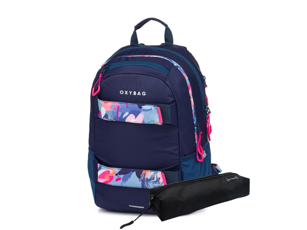 Studentský batoh + etue OXY Sport Flowers Blue