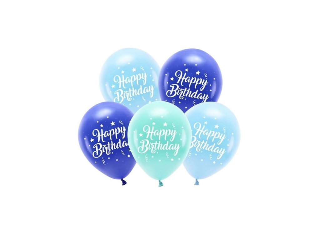 Eko balónky Happy Birthday modré 5ks
