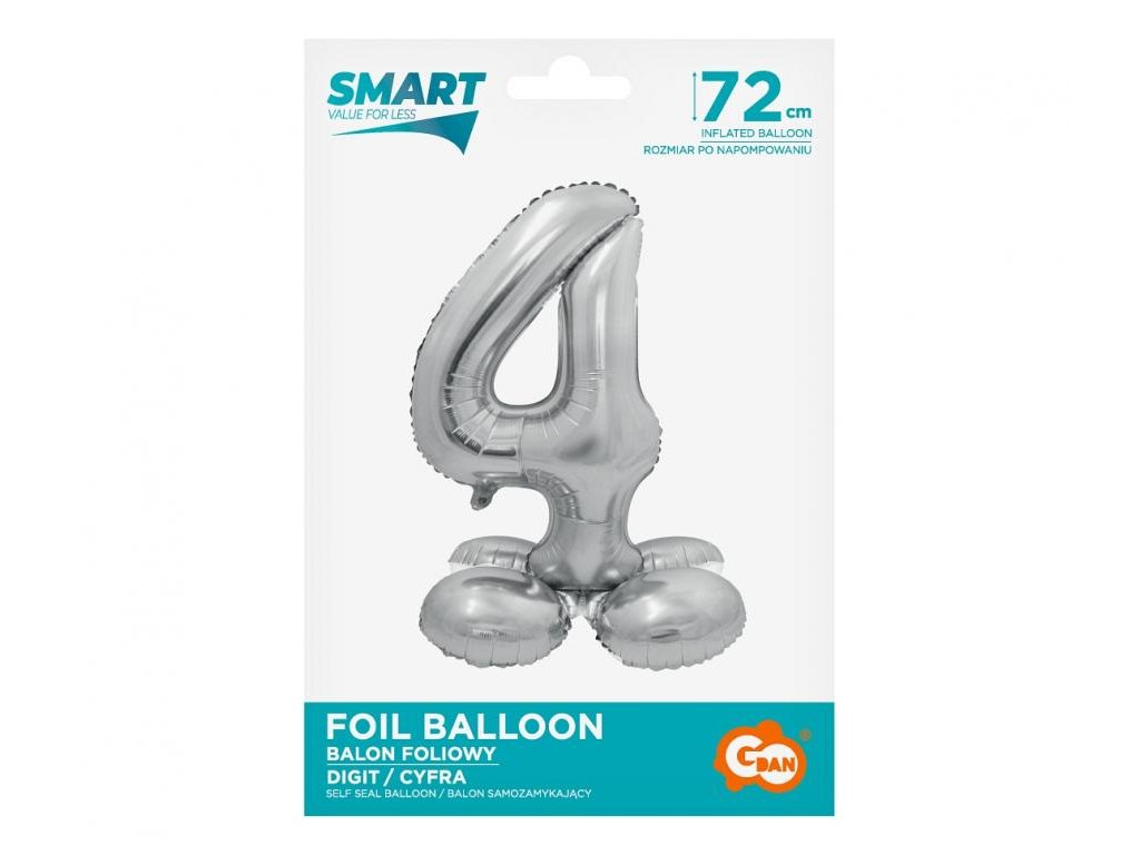 Fóliový balónek SMART samostojný číslo 4, stříbrný, 72 cm