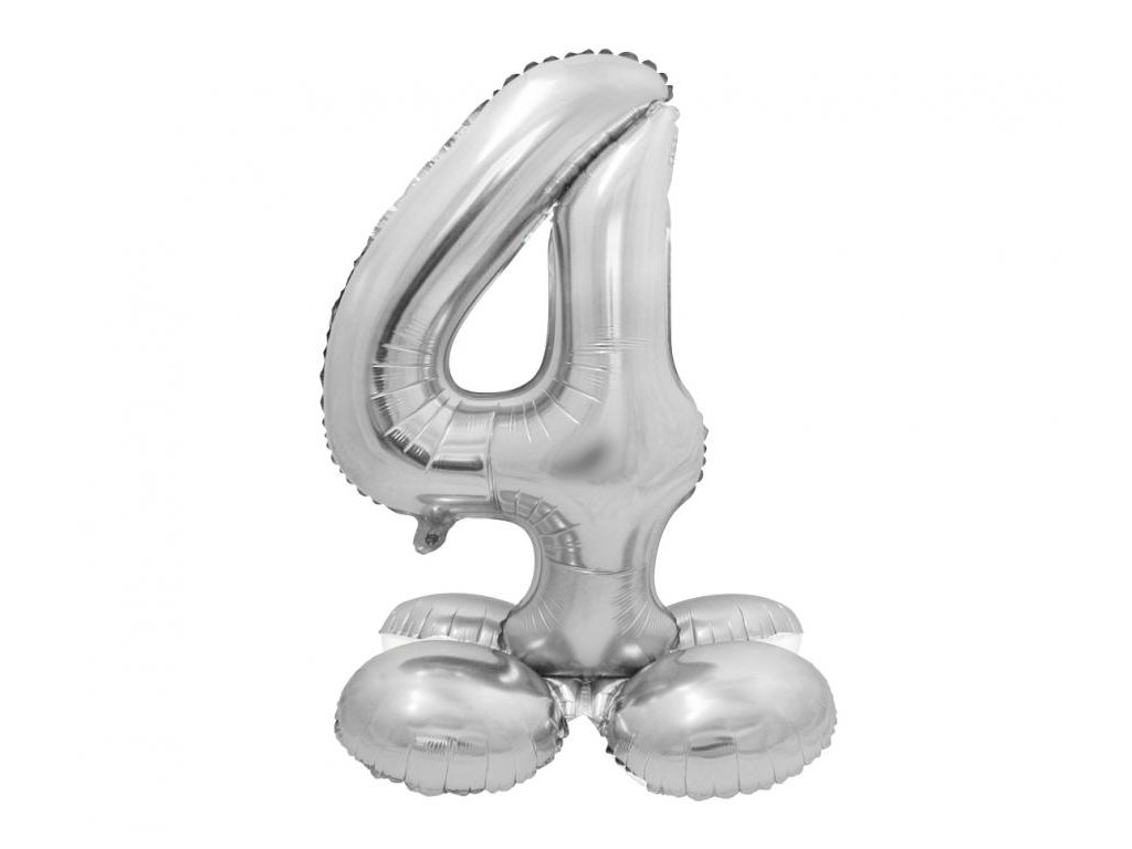 Fóliový balónek číslo 4 ve stříbrné barvě o výšce 72cm. Balónek je samostojný, je možné ho i přivázat.