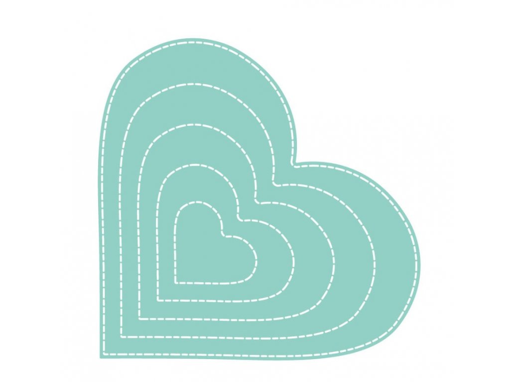 Sada nadčasových raznic ve tvaru srdce s ozdobným prošíváním. Vyřezávací raznice v pěti různých velikostech umožňují vyřezávání plných tvarů nebo rámů, které zdůrazňují romantickou povahu ruční práce.