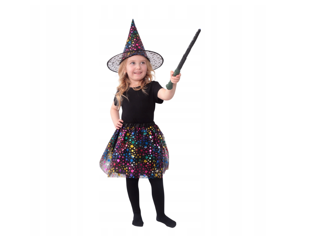 Součástí balení je nejen stylová suknička, ale i nezbytný špičatý klobouk, bez kterého se žádná opravdová čarodějka neobejde.