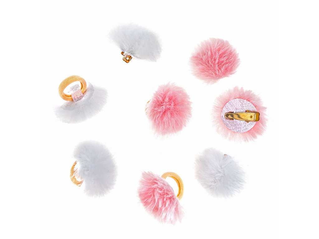 Tyto nadýchané, ploché bílé bambulky jsou připevněny k praktické stužce. Jednoduše bambulku odtrhněte a připevněte ji na vámi zvolené místo.
