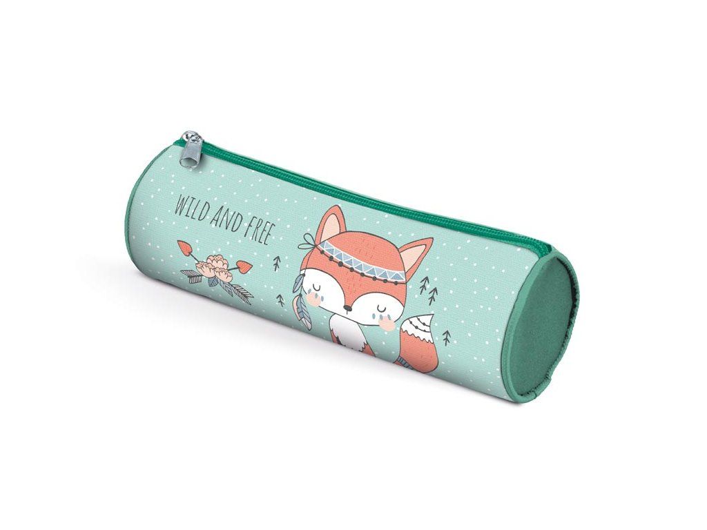 Školní penál/etue ve světle zelené barvě s motivem lišky. Penál má jednu komoru s uzavíráním na zip. Uvnitř je dostatek prostoru na všechny psací potřeby, co školák potřebuje. Vhodný především na pastelky, fixy a další psací potřeby. Etue je vyrobena z kvalitních a odolných materiálů.