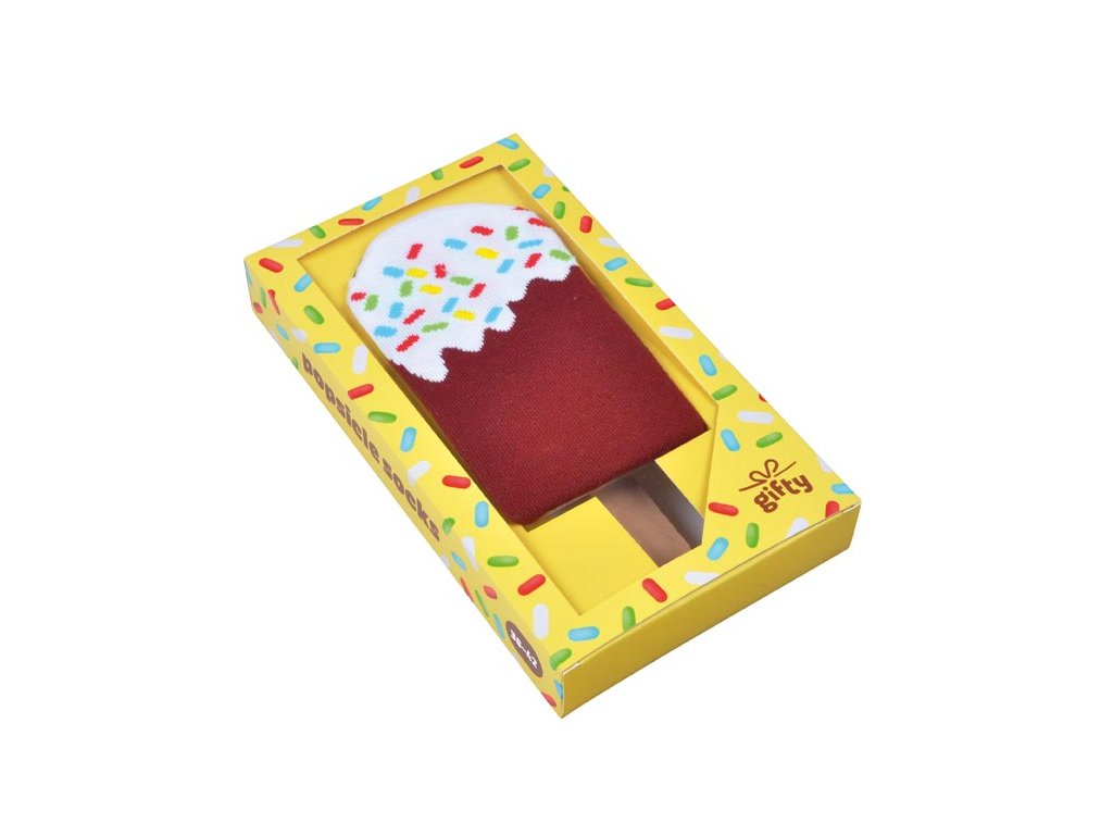 Kdo říká, že ponožky musejí být obyčejné? Model NANUK od Gifty dokazuje opak – na první pohled připomene sladkou letní pochoutku, ale ve skutečnosti ukrývá pohodlný pár ponožek ve velikosti 43–45.