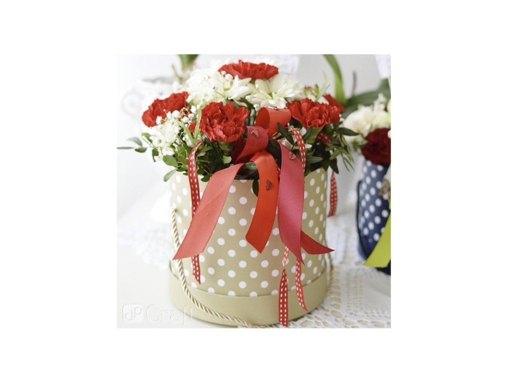 Ozdobná krabička kulatá se šnůrkou malá, přírodní s puntíky