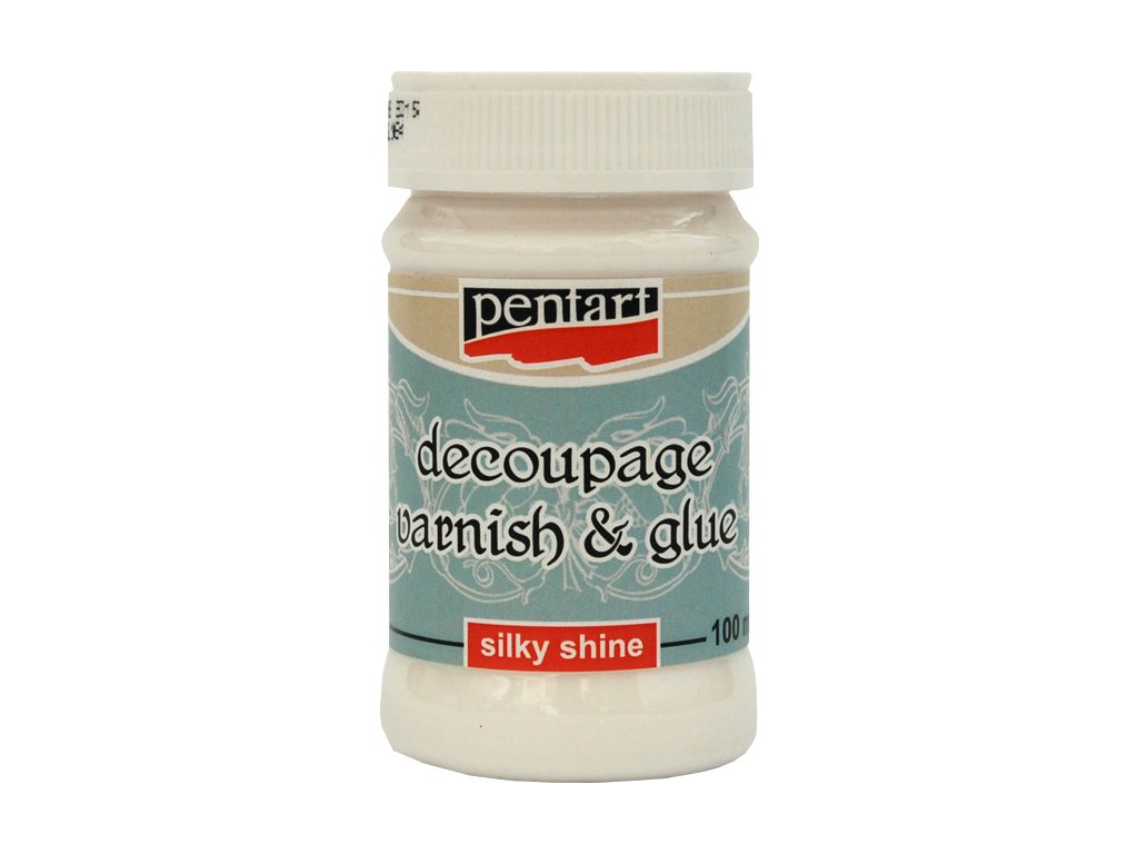 Lepidlo a lak v jednom na decoupage s hedvábným leskem. Po uschnutí je voděodolné.