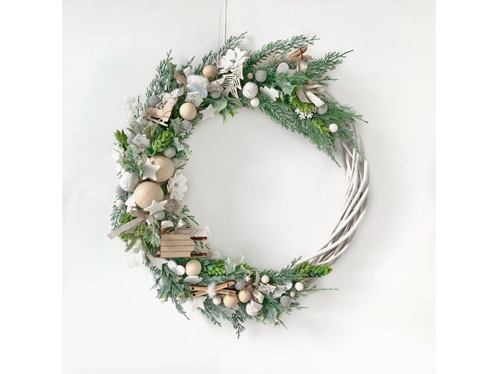 Proutěný věnec 36cm bílý