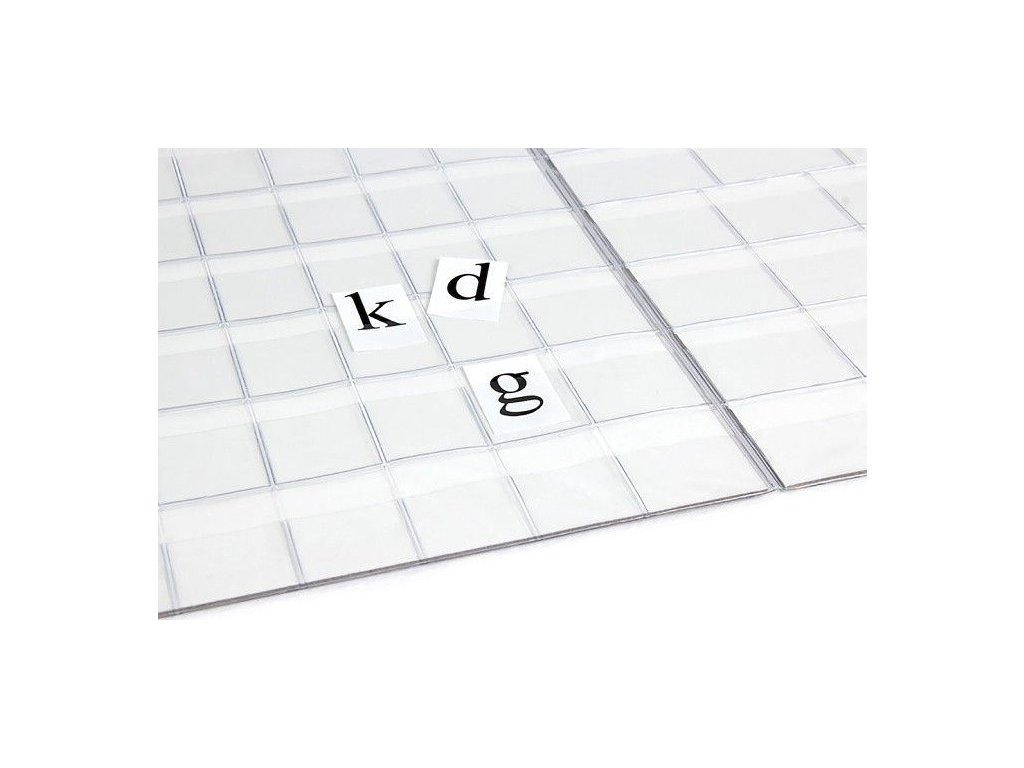 Plastové školní desky na písmenka pro prvňáčky, díky nimž jsou písmenka chráněná před poškozením, ohýbáním nebo znečištěním.