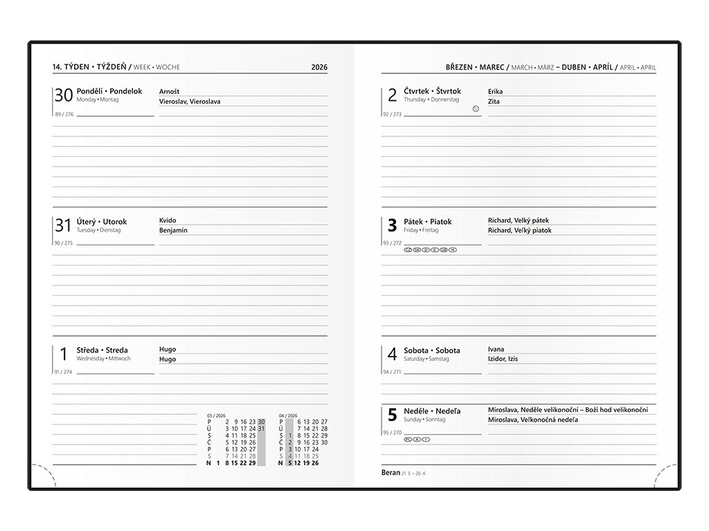 Diář týdenní 2026 - Prokop - Lamino - B6 - Modrý