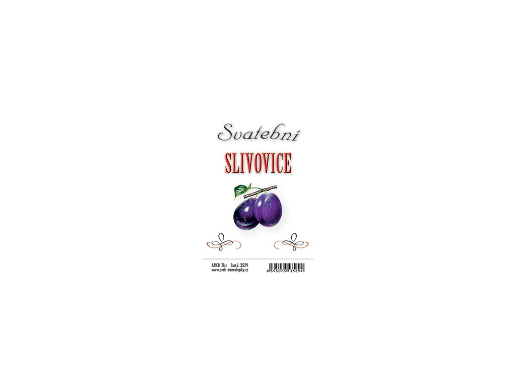 Samolepka na svatební Slivovici. Rozměr samolepky 6x9,5 cm.