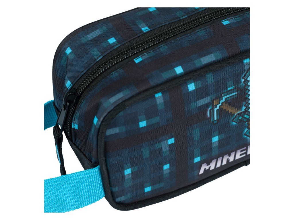 Prostorný penál s motivem populární počítačové hry Minecraft.