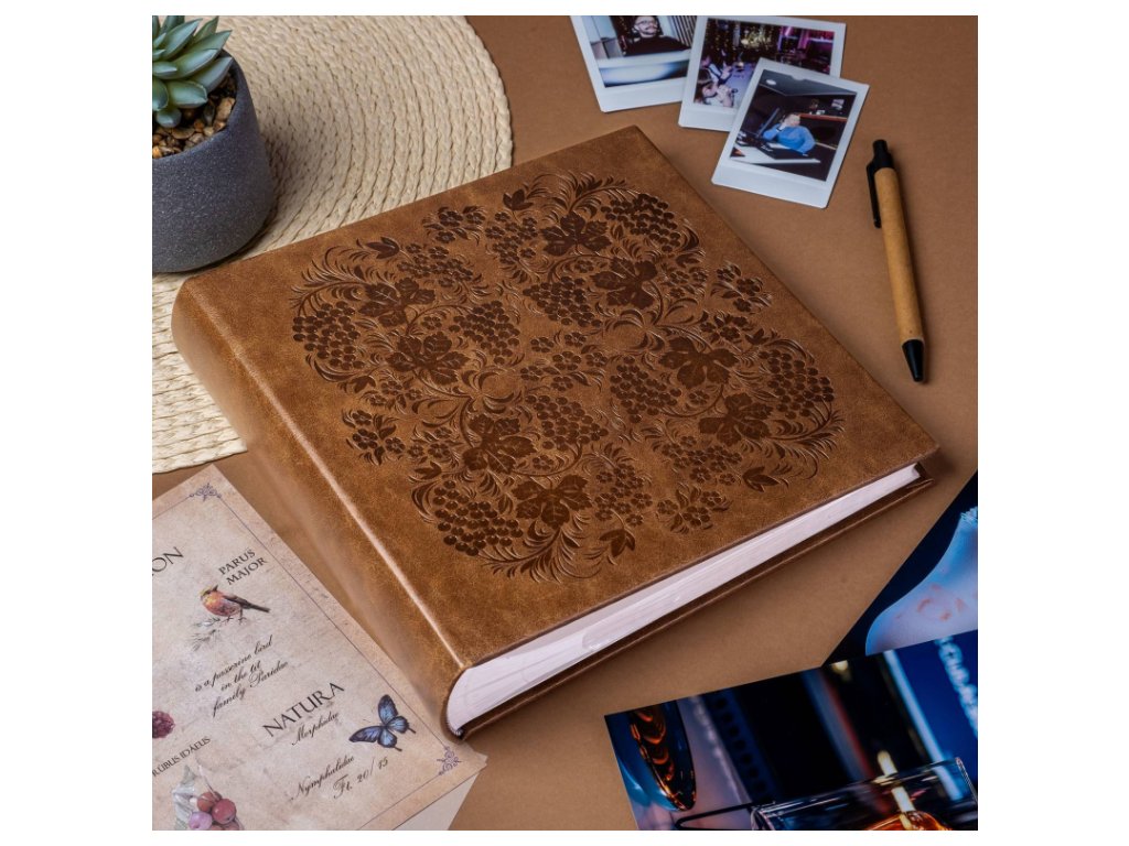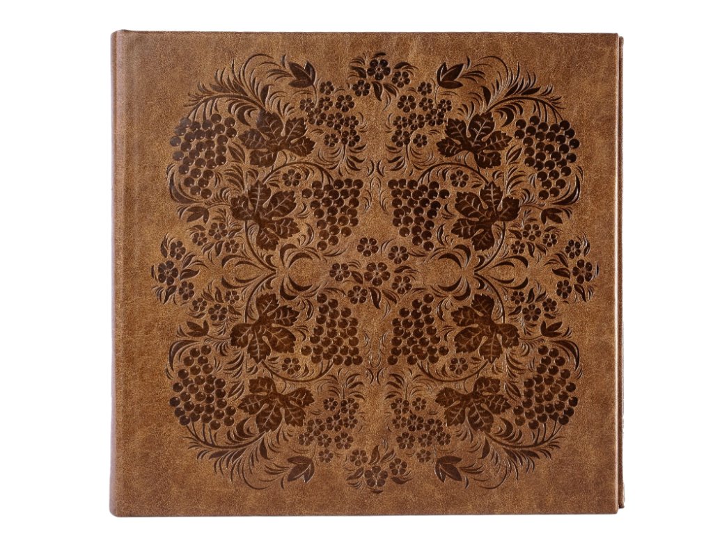 Album je vyrobeno z vysoce kvalitní ekokůže tmavě pískové barvy . Obal zdobí krásná květinová ražba .