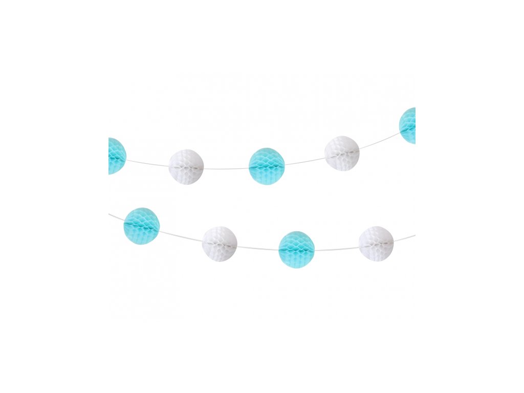 Ozdobná girlanda s kuličkami. Krásná pro každou party a oslavu i pro Baby shower.  Délka: 250 cm Barva: modrá