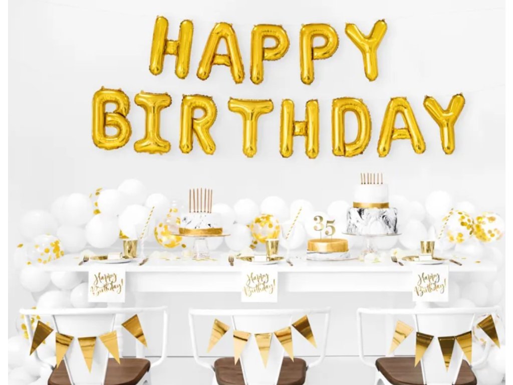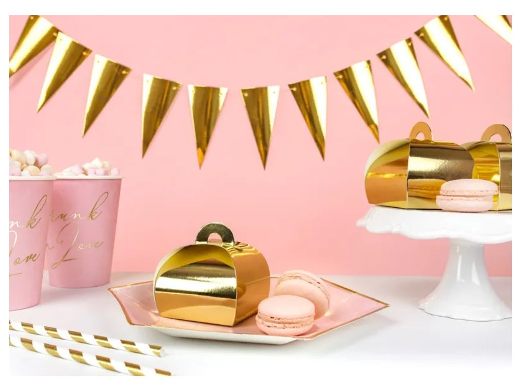 Zrcadlová vlaječková girlanda, pro složení, sada obsahuje 14 vlajek velikosti 13 cm a cca 3 m zlatého provázku, můžete si tak libovolně udělat kompozici podle potřeby.