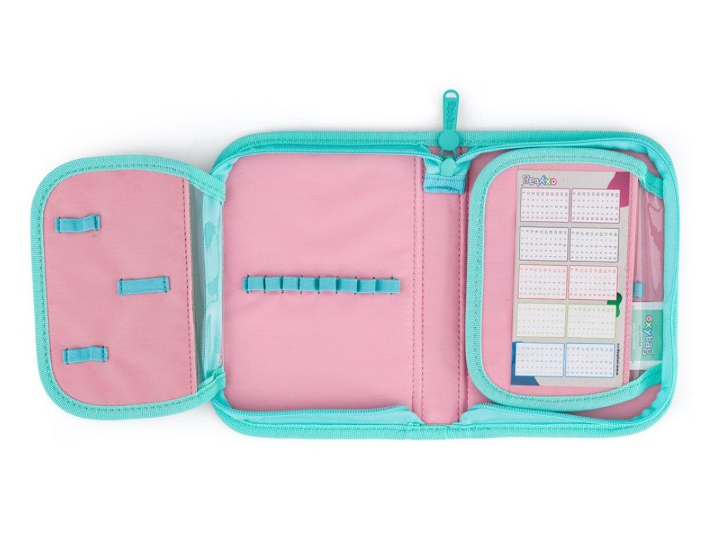 Dvě prostorné chlopně s 25 gumovými poutky bezpečně udrží každou tužku, pero, pastelku, zvýrazňovač i fix přesně tam, kde má být. Žádné prohrabávání, žádné hledání – otevřít, vzít, zavřít, hotovo. A díky průhledné fólii uvnitř bude mít váš školák rozvrh hodin nebo důležité poznámky vždy po ruce, aniž by musel lovit papírek ze dna batohu.