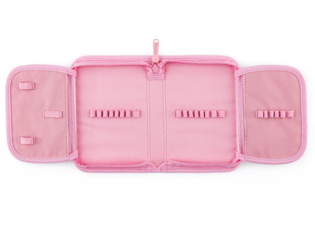 Dvě prostorné chlopně s 25 gumovými poutky bezpečně udrží každou tužku, pero, pastelku, zvýrazňovač i fix přesně tam, kde má být. Žádné prohrabávání, žádné hledání – otevřít, vzít, zavřít, hotovo. A díky průhledné fólii uvnitř bude mít váš školák rozvrh hodin nebo důležité poznámky vždy po ruce, aniž by musel lovit papírek ze dna batohu.