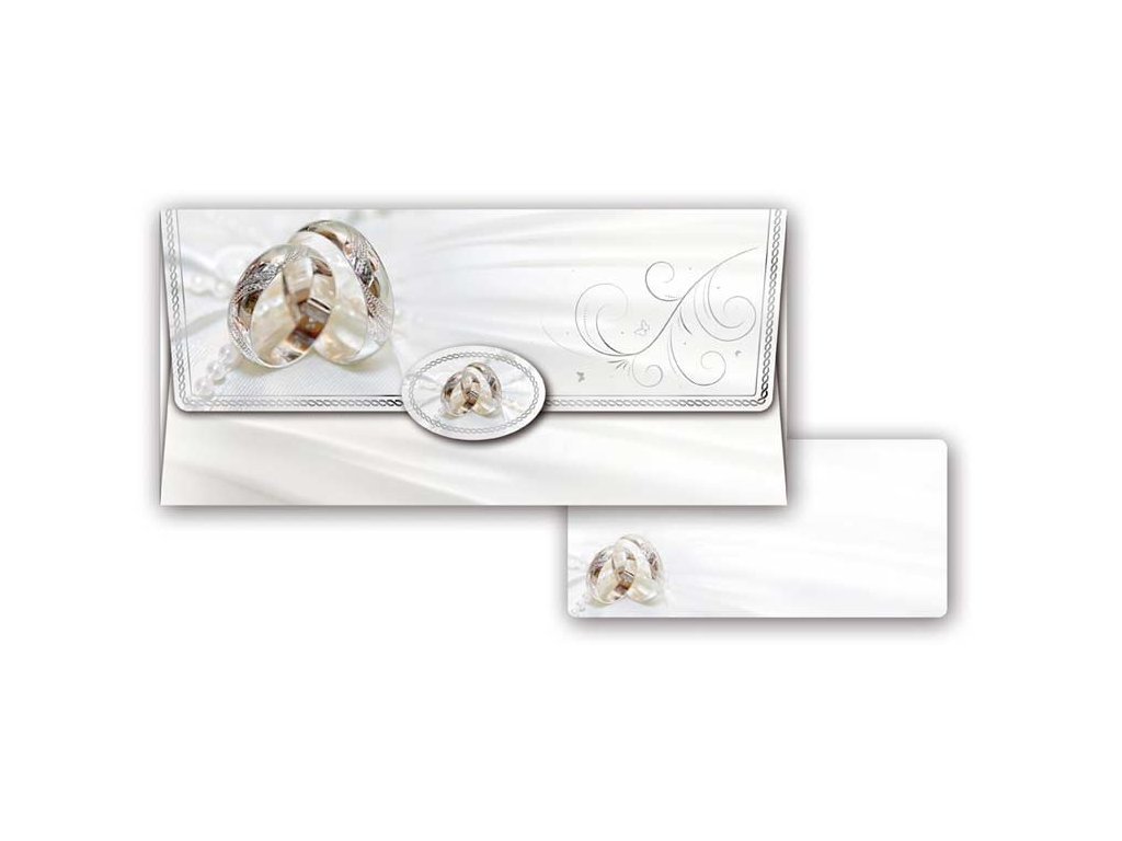 Dárková obálka na peníze pro novomanžele. Udělejte novomanželům radost a věnujte jim obálku s penězi nebo dárkovým poukazem. Uvnitř je kartička bez textu, na kterou můžete napsat věnování.