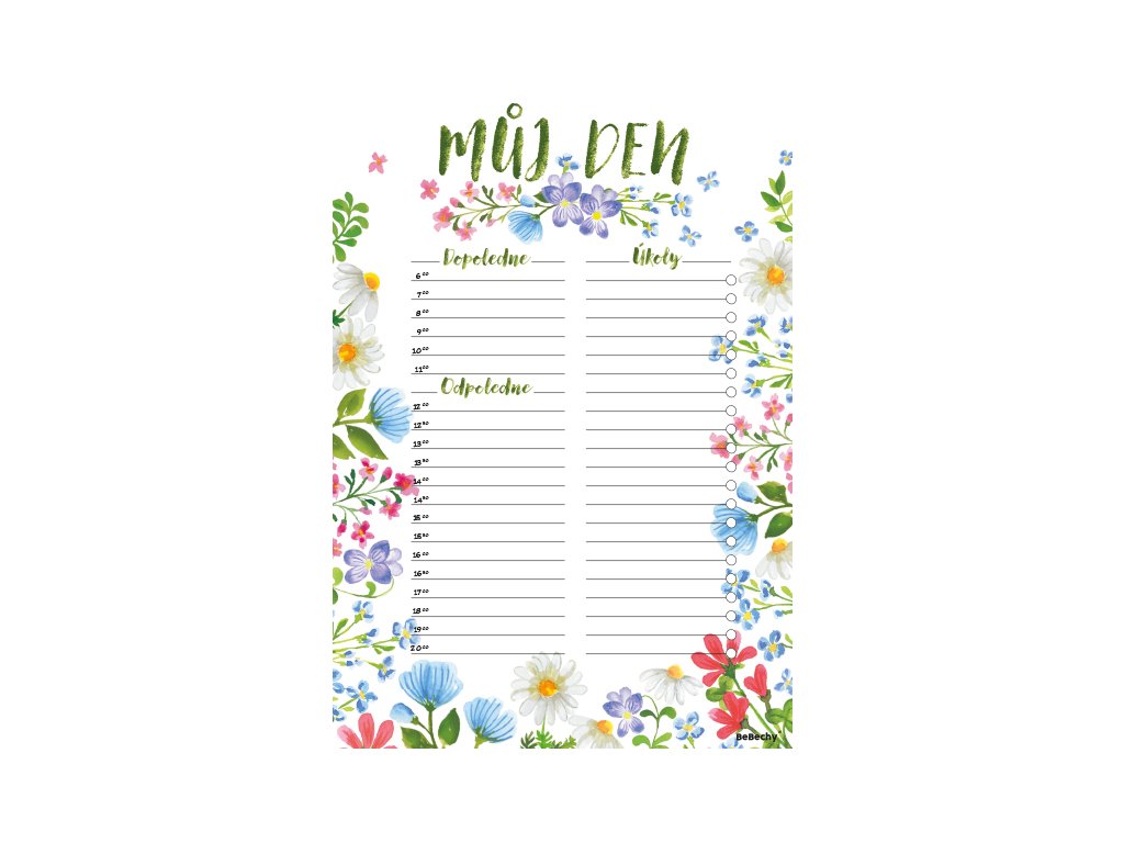 Detailní rozvržení dne pro ty, kteří chtějí mít pod kontrolou každou hodinu. Vhodný pro pracovní vytížení, studijní plán nebo denní rutinu. Kombinuje časový harmonogram s místem pro úkoly i poznámky.