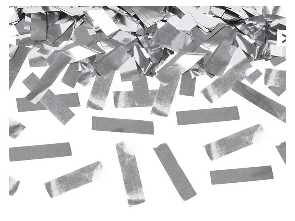 Vystřelovací konfety stříbrné proužky 60cm