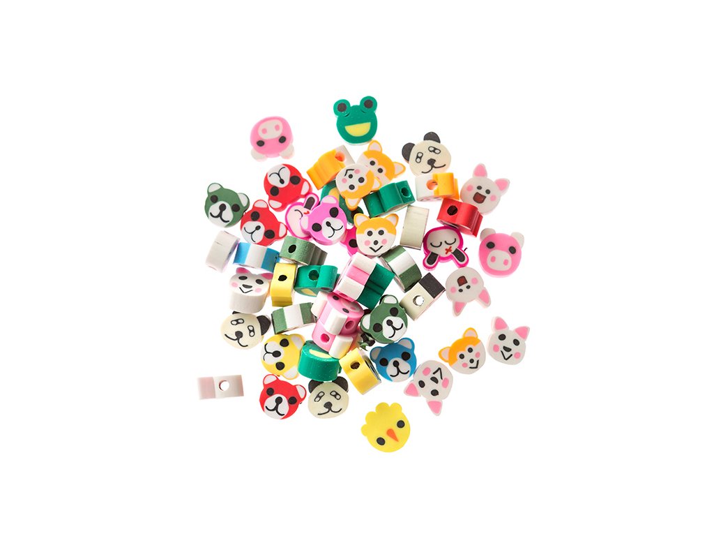 POLYMER CLAY BEADS, COLOURFUL ANIMALS, 1 CM, 48 SZT