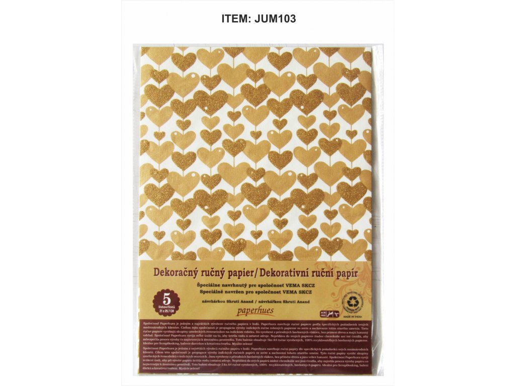 Dekorativní ruční papír A4 balení 5ks srdce
