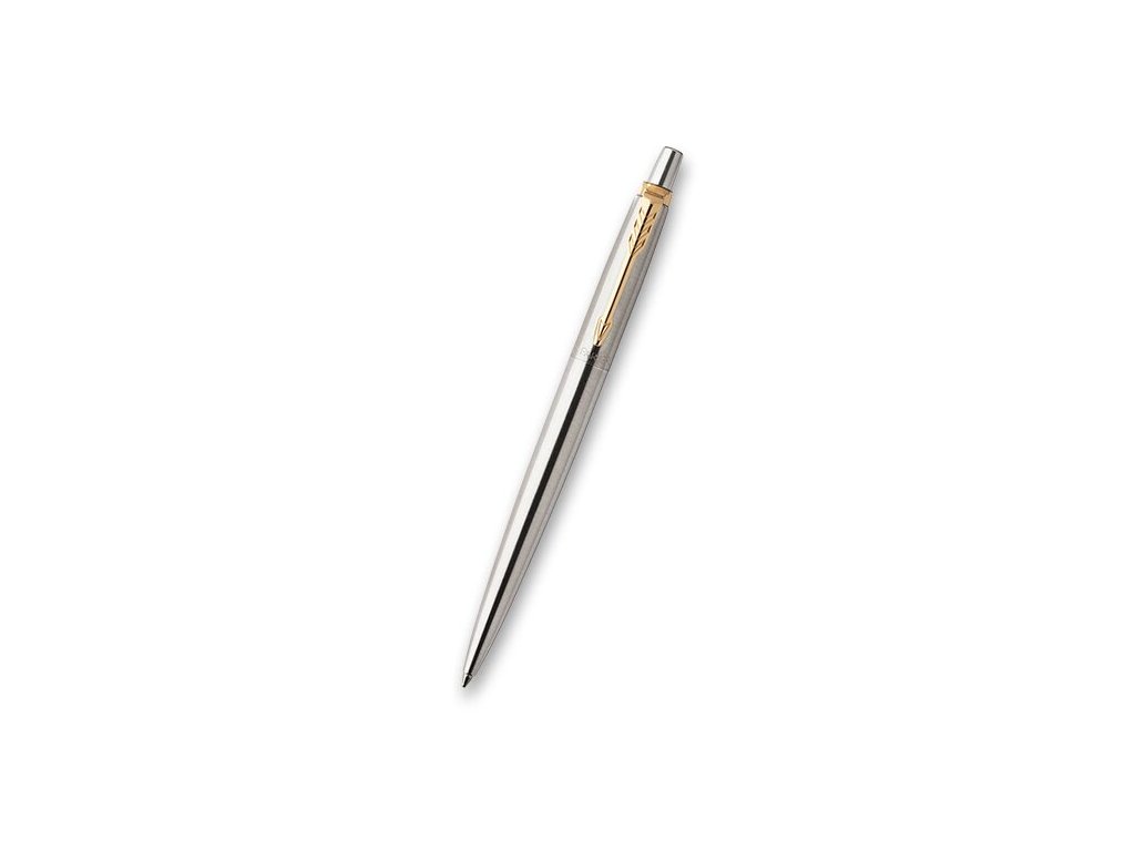 Kuličkové pero (propiska) Parker Jotter Stainless Steel GT má tělo z broušené nerezové oceli s leštěnou úpravou. Klip je pokovený zlatem.