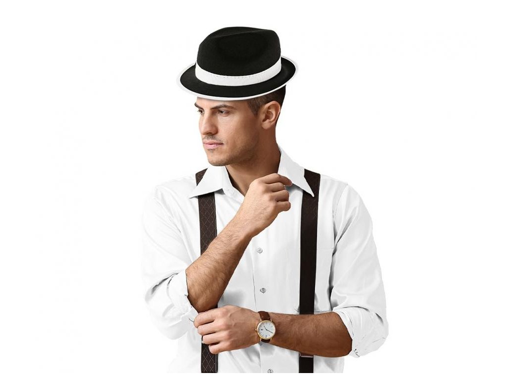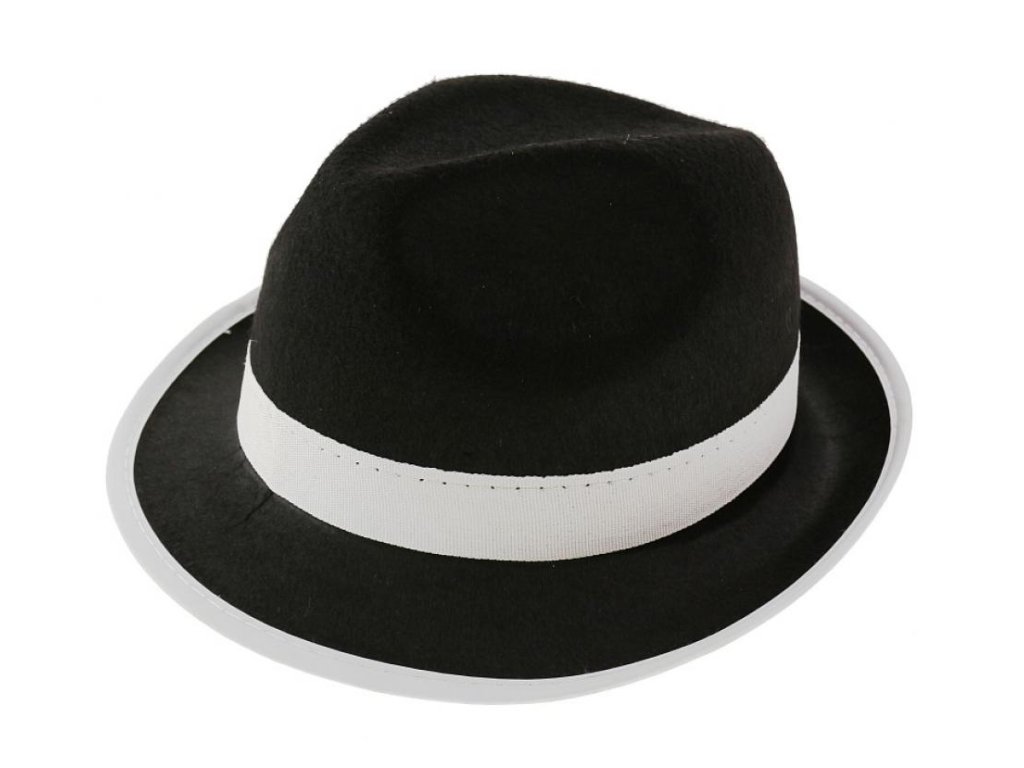 Klobouk gangster černý s bílým lemem a stužkou
