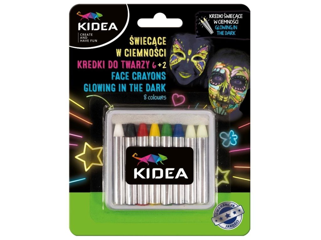 Obličejové tužky v osmi výrazných barvách, které se díky své jemné textuře skvěle hodí pro kreslení kreativních kreseb na kůži. Sada obsahuje dvě tužky svítící ve tmě, které dodají fenomenální efekt celému líčení. Pastelky jsou bezpečné, což potvrzují dermatologické testy. Mají ergonomický tvar, díky kterému dokonale padnou na rukojeť každého dítěte.
