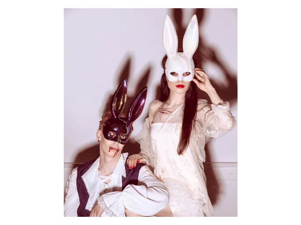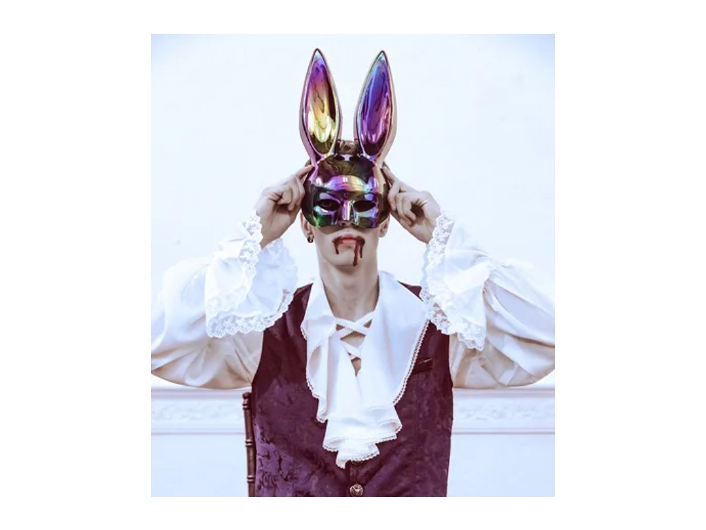 Lesklá maska králíčka v duhově černém provedení je vyrobena z pevného materiálu. Ideální na halloweenskou párty a karnevalové akce. Kvalitní zpracování a lesklý povrch zaručují dokonalý vzhled. Rozměr 16,5 x 34 cm.