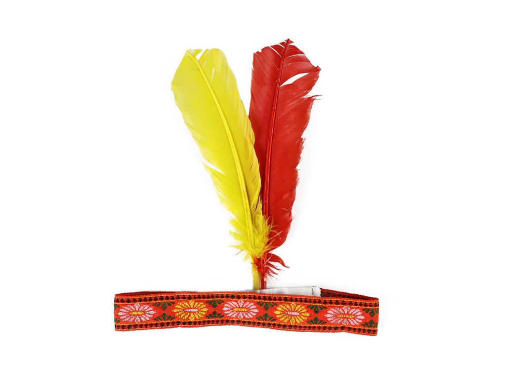 Rádi si hrajete na indiány? Tak tato zdobená indiánská čelenka s péry, dotáhne tvůj kostým na oslavě k dokonalosti! Čelenka s květinovými výšivkami a barevnými pérky je báječným doplňkem ke kostýmu indiánky!
