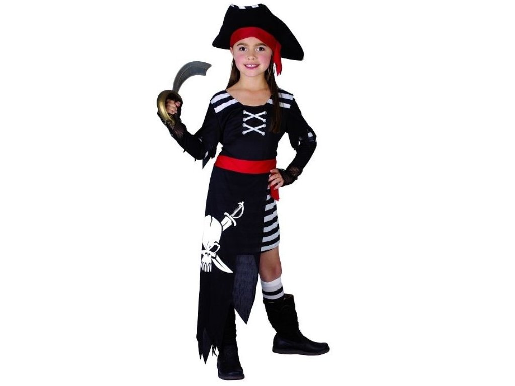 Kostým Pirátka, šaty s páskem a klobouk 110-120cm