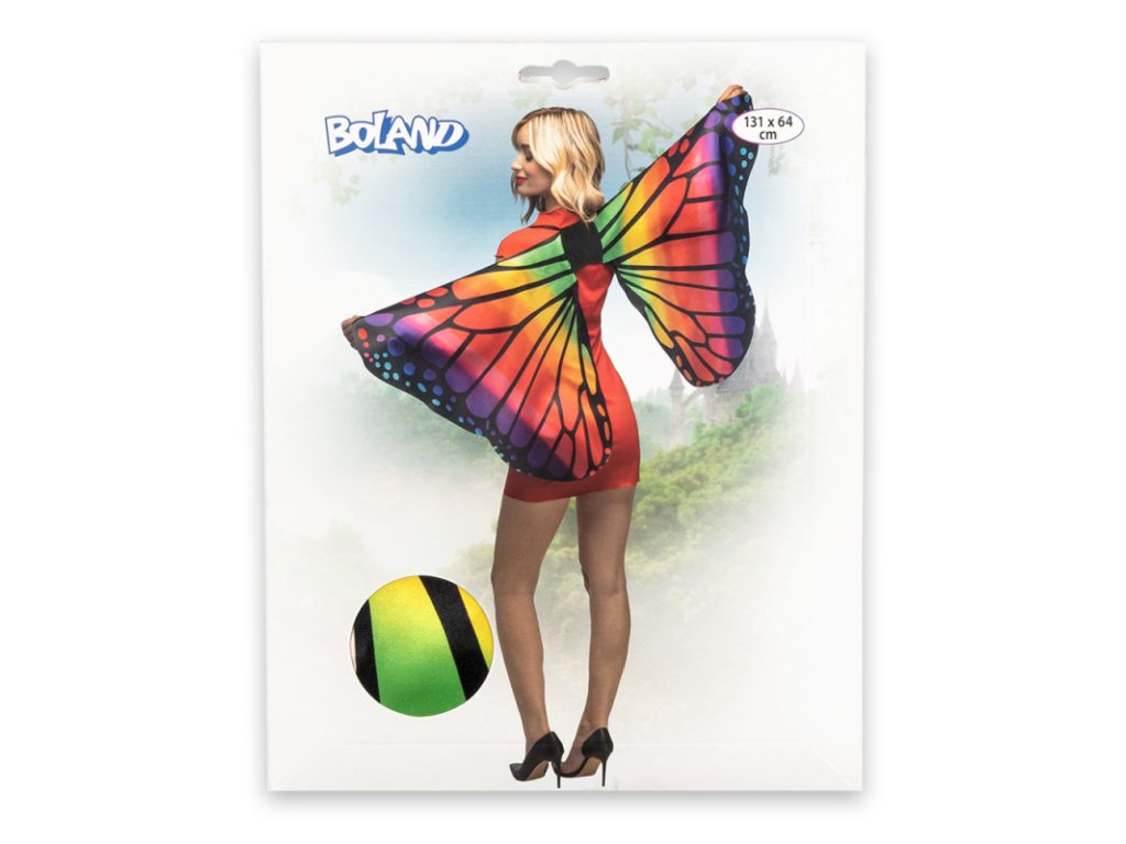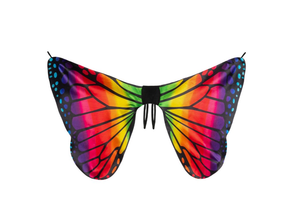 S těmito barevnými křídly se každý změní v krásného motýla. Křídla pro dospělé i děti mají krásný duhově zbarvený design a měří 64 x 131 cm. Díky pohodlným ramenním elastickým pásům a gumárenám, které lze připevnit na prsty, zůstávají křídla pevně na svém místě. Doplněk pro jedinečný festivalový vzhled nebo okouzlující kostým pro kostýmovou párty, nebo karneval.