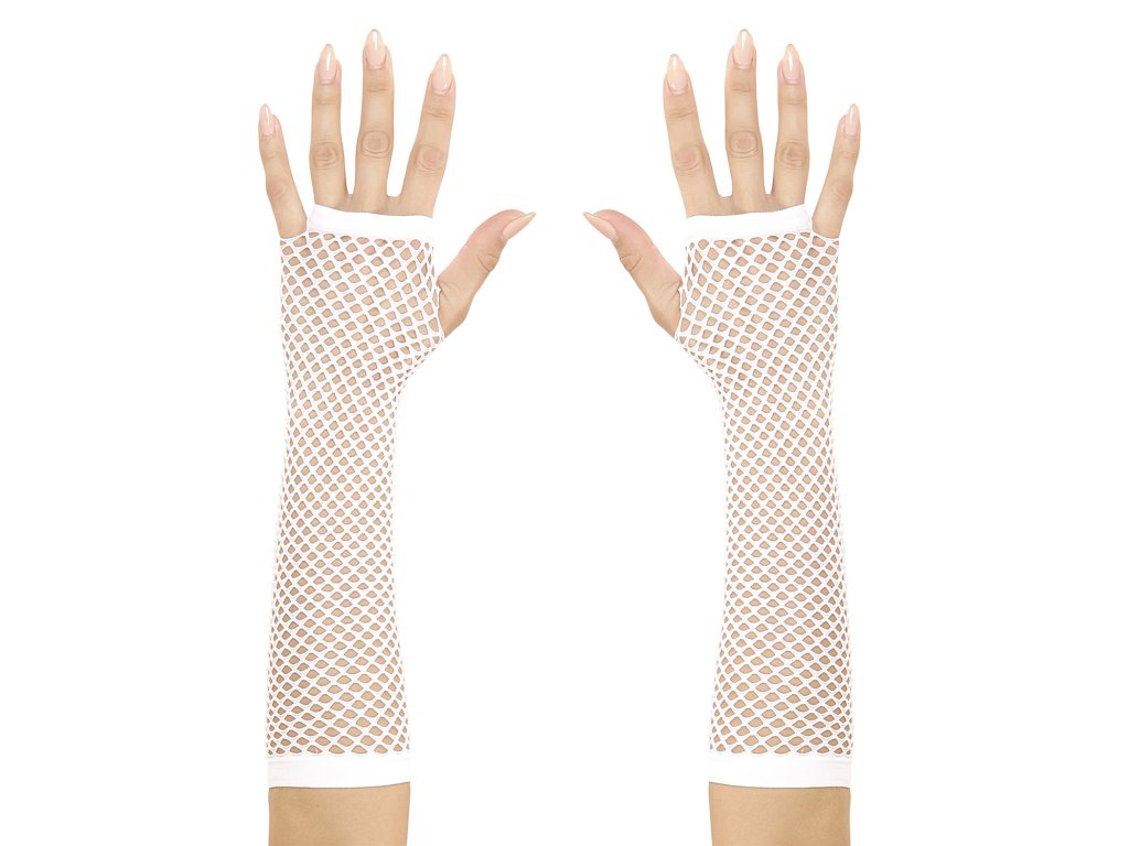 Módní dámské síťované rukavičky bez prstů v bílém provedení nejen na retro párty. Materiál: 90 % polyester, 10 % elastan.
