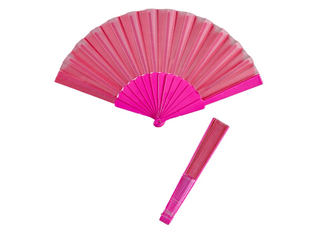 Růžový látkový vějíř s plastovým držátkem, vel. cca 23 cm