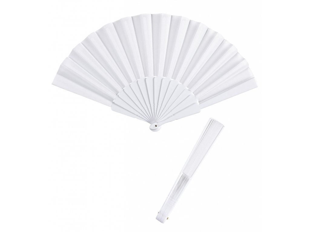 Bílý látkový vějíř s plastovým držátkem, vel. cca 23 cm