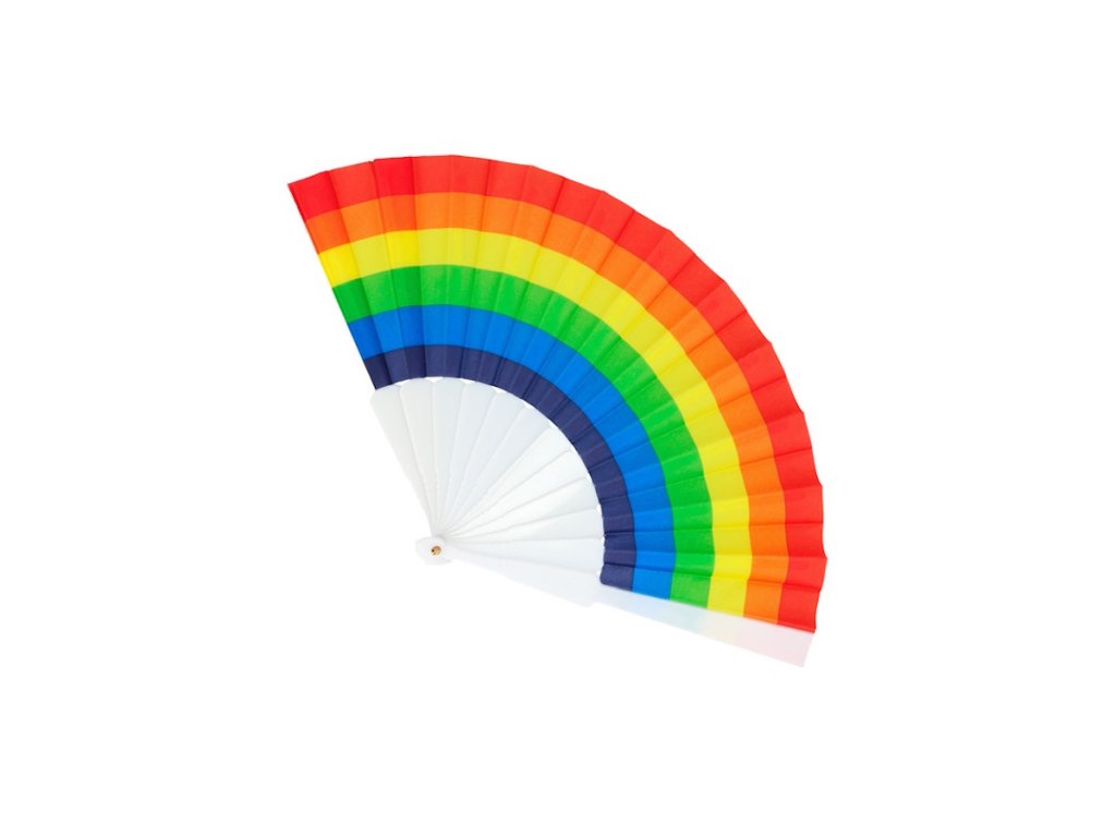 Barevný duhový festivalový vějíř. Vějíř ve španělském stylu měří 23 cm a je skvělým doplňkem pro zábavný den hrdosti, festivaly nebo duhovou párty. Vějíř s duhou je vyroben ze 70 % polyesteru a 30 % PVC, takže je vhodný pro muže i ženy.