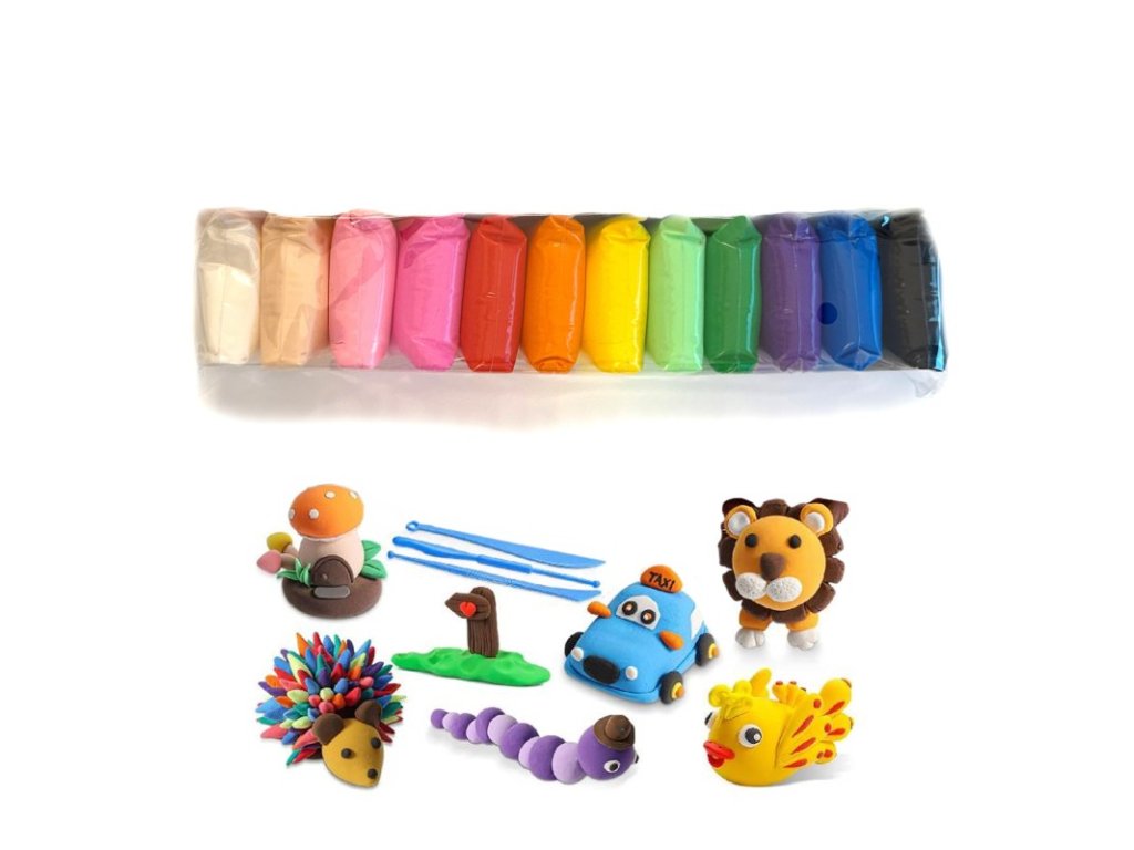 BALENÍ OBSAHUJE 12 DÍLŮ VE 12 BARVÁCH A PLASTOVÉ NÁŘADÍ.