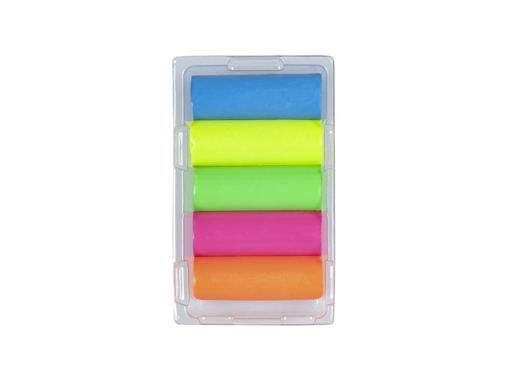 5 zářivých fluorescenčních barevných roubíků modelovací hmoty, které se hodí i na hodiny výtvarné výchovy.