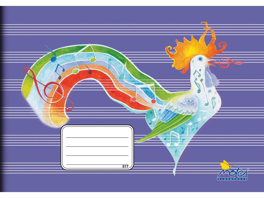 Notový sešit, vyrobený z hladkého, bezdřevého papíru. Formát A5 na šířku. Počet listů 8.