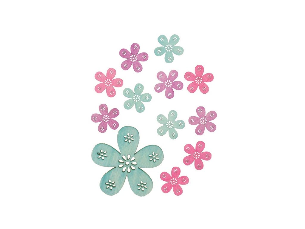 Dřevěné květy 4 cm, 12 ks