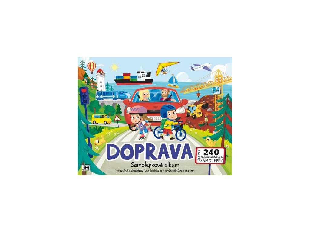 Samolepkové album obsahuje 4 stránky s barevným pozadím a více než 240 znovupoužitelných samolepek.